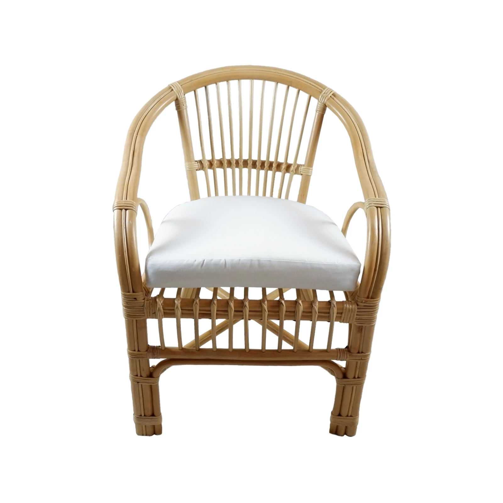 This classic and simple design of rattan chair is handcrafted and durable, equipped with cushions for your comfort. Comes in warm natural honey colour that is versatile to your home.