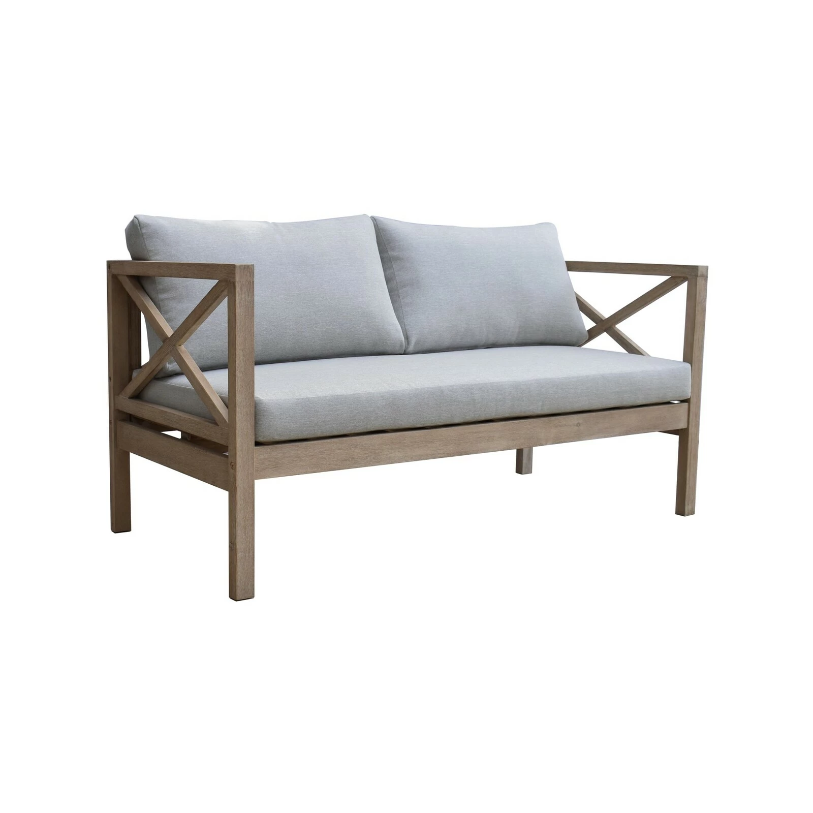 The Harbour 2 seater is crafted from sustainably harvested Acacia timber that meets the standards of the Forest Stewardship Council (FSC®). The timber is brushed with a white washed finish. Also part of the Harbour collection is a 1 seater sofa and coffee table, which all create a beautiful, rustic style outdoor setting with cross back frames.