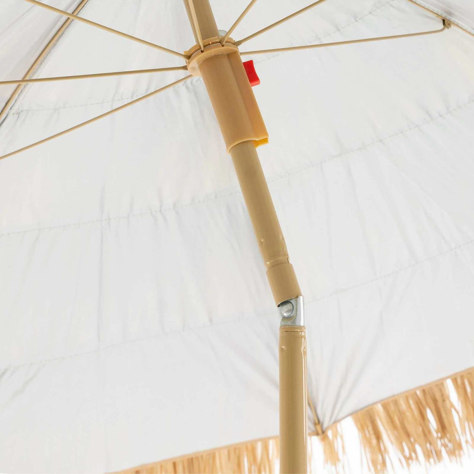 You’re transported to your tropical getaway happy place as the breeze rustles the thatch look fringe and the Hula Beach Umbrella looks stunning by the pool, on the patio, in the backyard and at the beach.